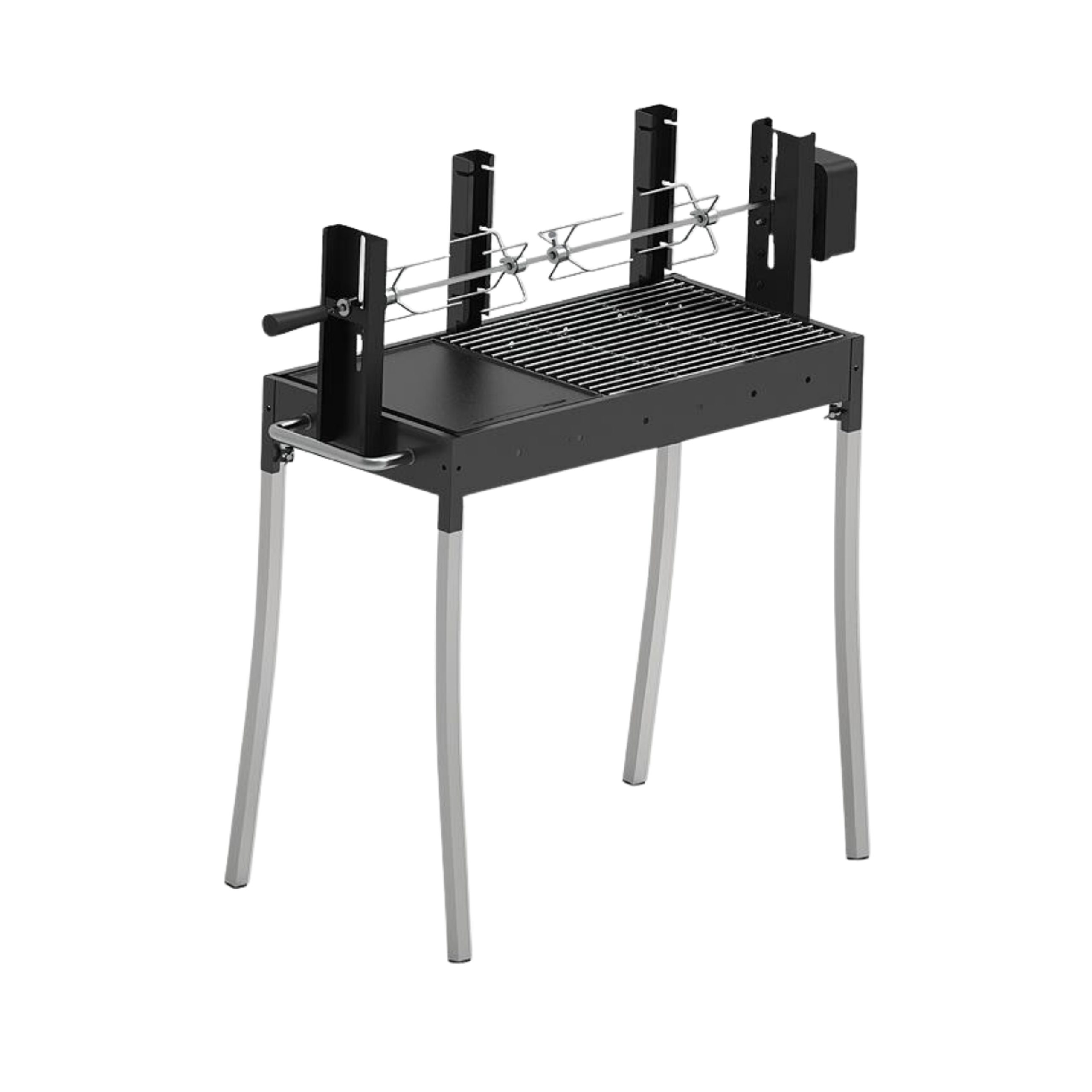 המנגל כולל פלאנצ’ת ברזל עבה בגודל 30×40 ס"מ, שיפוד מסתובב עם מנוע נילווה, ורשתות מצופות ניקל בעובי 5 מ"מ.
